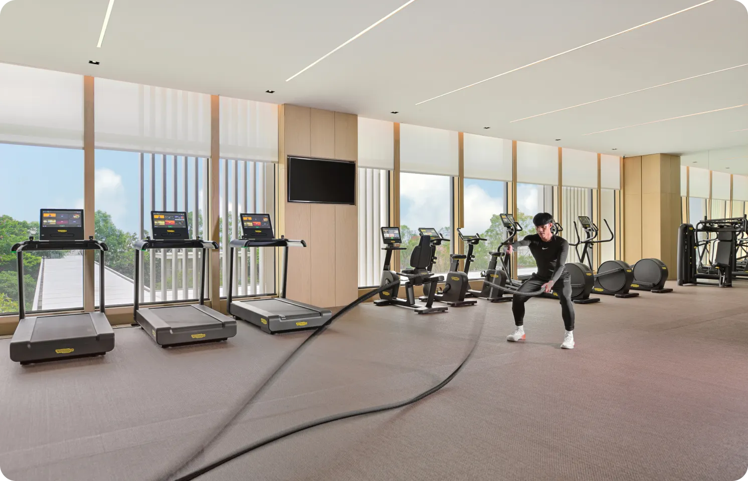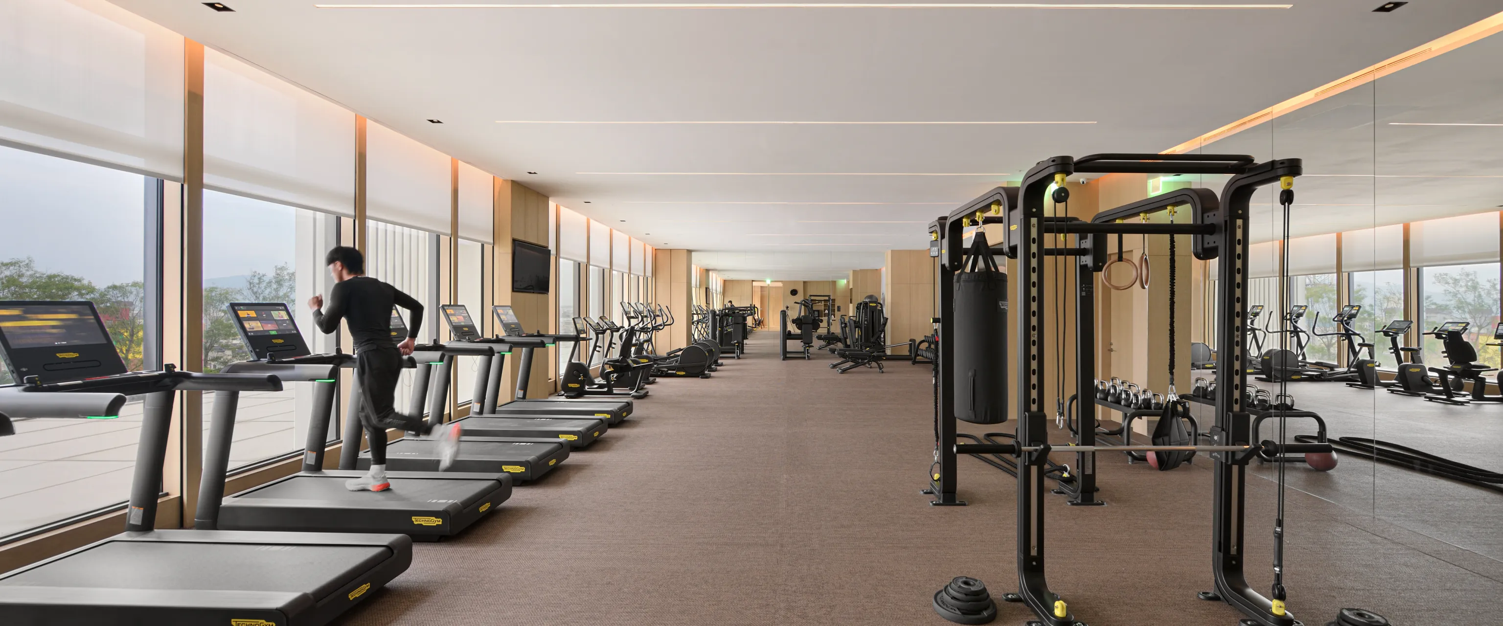 健身中心提供全方位的有氧與肌力訓練設備,讓您在舒適環境中達到理想的健身效果。引進了義大利頂級健身品牌 Technogym,設有多款高端健身器材,包括跑步機、滑步機、飛輪腳踏車、啞鈴訓練組及多功能訓練機台,滿足您不同的訓練需求。